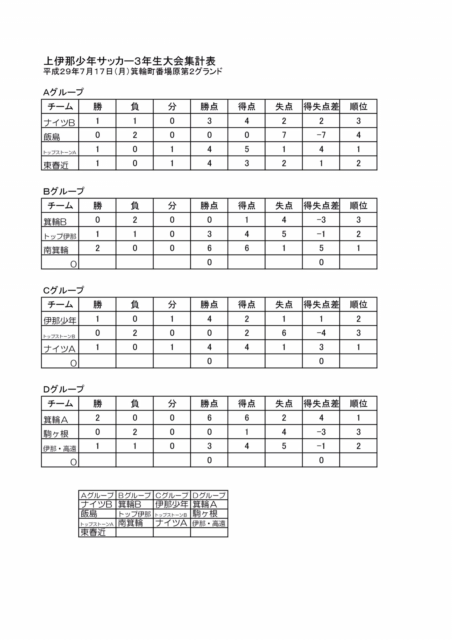 2017年7月17日(月)、箕輪町番場原第2グラウンドにて【上伊那少年サッカー3年生大会】に参加して来ましたので結果を報告します。
